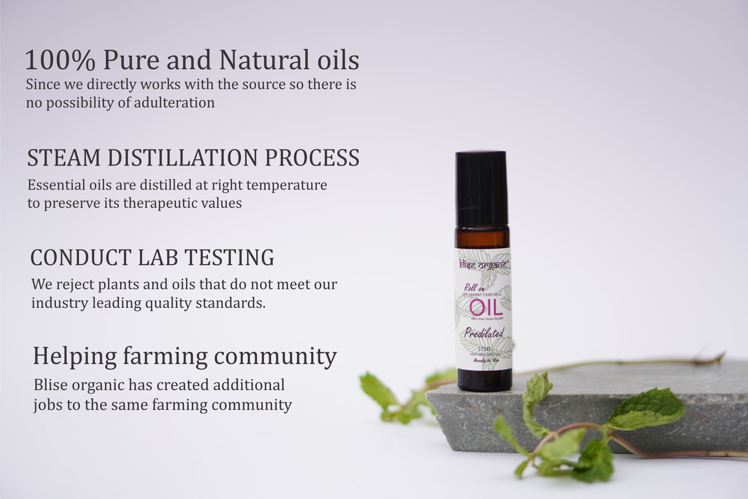 Whenever you purchase a Blise organic Essential oil bottle, you directly helps the farming community who needs your help the most.